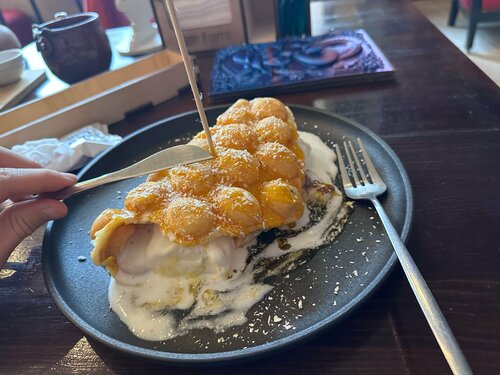 Очень вкусный Английский завтрак, советую Цена + качество Гонконгские вафли супер, очень вкусно (советую брать с Баунти) Выпив глоток сливочного пива, я почувствовал эйфорию