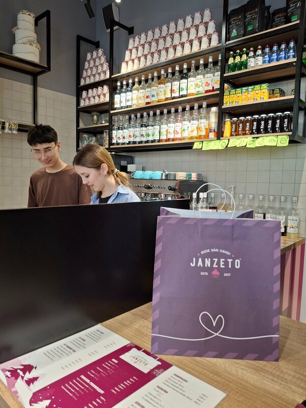 Кондитерская кофейня Janzetto ~ удобное расположение, очень приятное место со свежими десертами, ассортиментами напитков, круасанами, сладостями, муссовый торт с клубниковое ваниль ~ оболденное на вкус, с красивым оформлением, спасибо персоналам ~ Ксения и Артем!!! Очень милые, обслуживание на высшем уровне!!! Я очень БЛАГОДАРНА!!! Всем советую посетить!!!