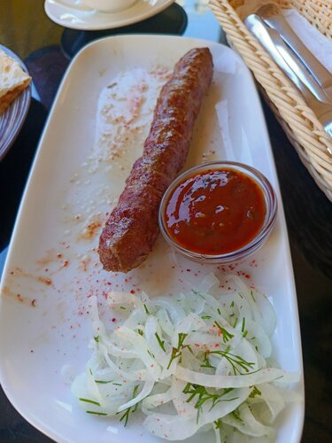 Хорошее место для остановки после прогулки с большой кампанией. Внутри просторное помещение с двумя этажами. Официантка вышла в зал и приняла все заказы быстро. Буквально через 15 мин в зал стали выносить заказы. Посуда не пластик и это плюс. Подача обычная без изысков. Ценник средний. Еда понравилась ( манты, плов, чебуреки). Но вот прогуливающийся и трущийся о посетителей кот всё-таки ни к месту. Но в общем рекомендую, поскольку вкусно.