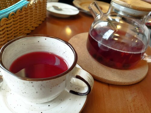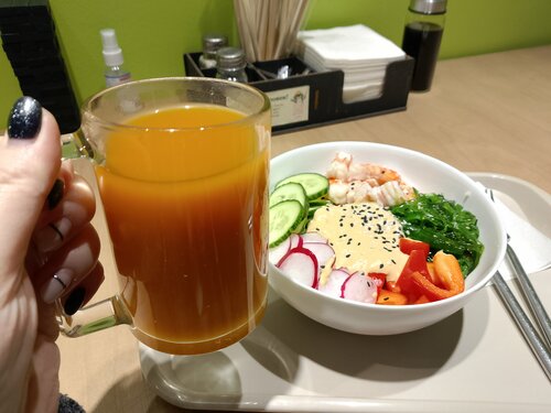 Очень вкусно! Облепиховый чай и поке с креветками!