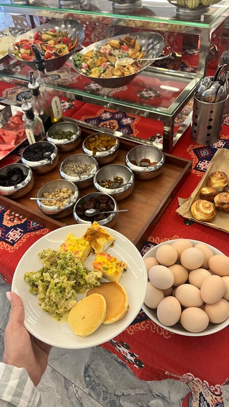 Хороший чистый современный отель в 15-20 мин ходьбы от центральной площади Бишкека. Особенно понравились завтраки - очень вкусно, разнообразно (и каша, и яичница, и мясо-колбаса, овощи, фрукты и тд):