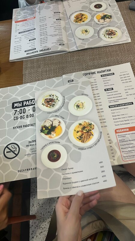 Не ожидала в таком унылом, бедном, застрявшем годах в 70-80-х райончике Каракола, оказаться в чудесной кофейне «московского уровня» с потрясающей кухней, очень широким выбором блюд, классным дизайном и приветливым персоналом! Раф на миндальном молоке, бамбл на вишневом соке, мокка с Бейлисом, Пина колада, смузи, милкшейки, чаи - напитки алкогольные и без на любой вкус. Из еды - широченный выбор завтраков, салатов, вторых блюд, десертов, специальное сезонное меню. Я брала салат с курицей и апельсинами, подруги - пасту с курицей, сырные палочки, Том-ям и брауни. Все остались в воторге! Спасибо хозяевам, администраторам, поварам, официантам, бариста! 10/10!!!