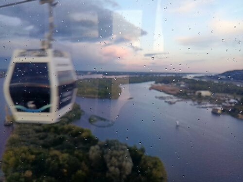 Вот такие красивые виды открываются с канатной дороги, обновлённые современные кабинки на 8 мест, но лучше не в час пик ехать, т.к. многие возвращаются с работы домой и кабинки битком угрюмыми людьми в телефонах)) насладиться в полной мере видами и красотой реки лучше в полупустой кабинки.