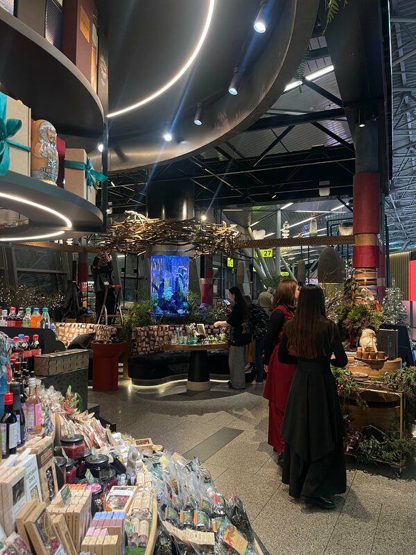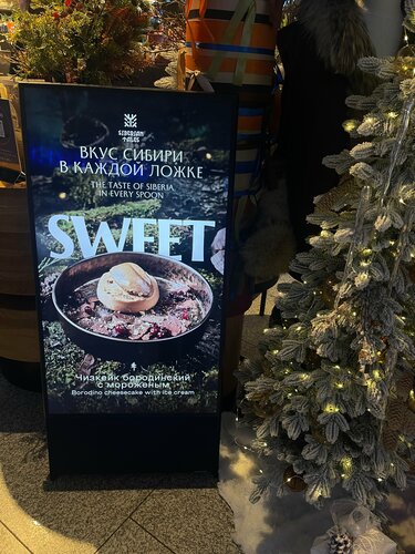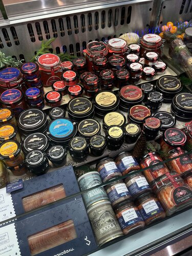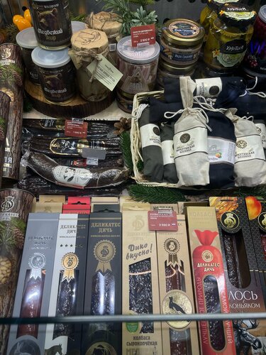Скажу сразу, что звезду снизила из за дороговизны, все понятно, аэропорт, пятое/десятое, но хотелось бы более приемлемой стоимости как на продаваемые товары, так и на меню. Вся продукция вроде эксклюзивная, такая эдакая, с изюминкой. Не мониторила, есть ли редкие продукты сибирской кухни в городе ( Москва), но думаю, что на рынках типа Дорогомиловского или Черемушкинского есть это добро валом. Расчёт чисто на иностранцев. Черная икра, красная, оленина, медведь и тд
