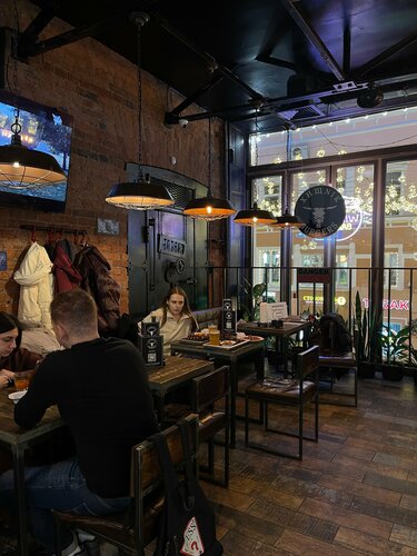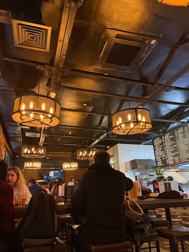 Расположение в старом жилом фонде на втором этаже в самом центре Москвы! Моментальная наполняемость атмосферой! Сама бургерная достаточно вместительная, посадочных мест вечером в воскресенье всем хватало. Однозначно заведение не пустует. Адекватное соотношение цена /качество. Я заказывала фирменный бургер Хищник, потрясающе вкусно! Все ароматное, горячее, свежее; с пылу с жару) По запросу не стали добавлять лук в бургер. Отличная клиентоориентированность. Также ужин дополнила деревенским картофелем. Нет возможности придраться! Летом не была в данном заведении, но ощущение, что теплыми летними вечерами открыты витражные окна с прекрасным видом на исторический центр города.