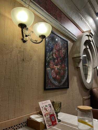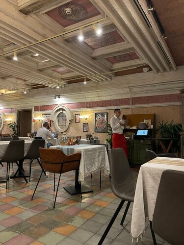 Чисто, аккуратно, интерьер выдержан в стиле Му-му). Еда постоянно заветренная, как будто остатки вчерашнего дня. Контингент - или там пусто, или таджики/узбеки большой дружной семьёй. Шумно судачат на всем родном языке, радуются, спорят, смеются, в общем, ведут себя активно, поэтому ощущение будто ты в Таджикистане 🤷‍♀️. Меню и ценовую политику прилагаю в фото. Сотрудники кафе постоянно зависают в телефонах и на редких посетителей ноль на массу.