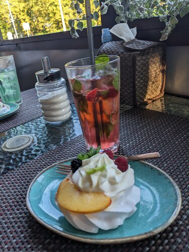 Очень приятная кофейня. Брала десерт Павлова и клубничный мохито. Десерт прекрасен, в меру сладкий, со свежими фруктами и ягодами по сезону. Мохито освежающ🙂