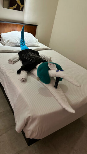 Хороший отель. Старенький но приемлемо за свои деньги. По еде все хорошо, вопросов нет. Аквапарк работает 2 часа до обеда и 3 после. По расположению не очень хорошо, базаров рядом нет, торговых центров тоже. Чтобы ночью погулять надо брать такси. Но любителям казино плюс, оно в 5 минутах ходьбы. В целом все хорошо. Вернулся бы - да.