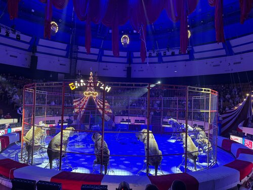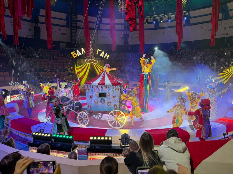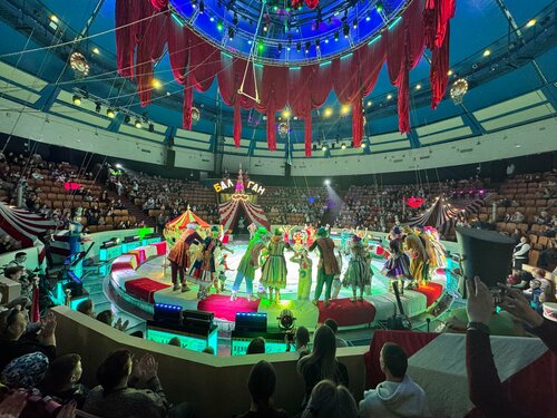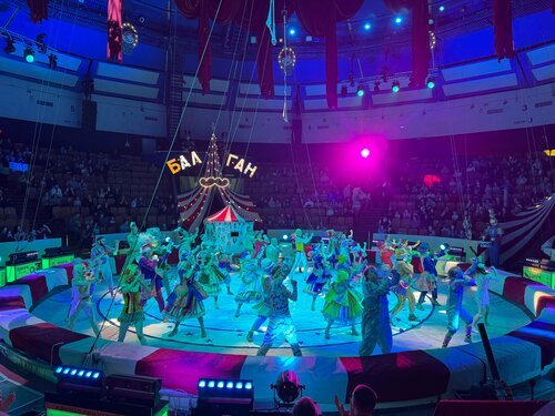 Были на представлении «Балаган». Очень понравились морские котики и гимнасты. Костюмы у артистов шикарные - яркие и красивые. Само шоу идет 2,5 часа. Детям сидеть столько времени тяжело. Буфет очень слабый, купить нечего. По возможности - нужно брать с собой попкорн, еду) в буфете - голяк) Отдельно отметим длинные очереди в туалет (особенно - в женский).