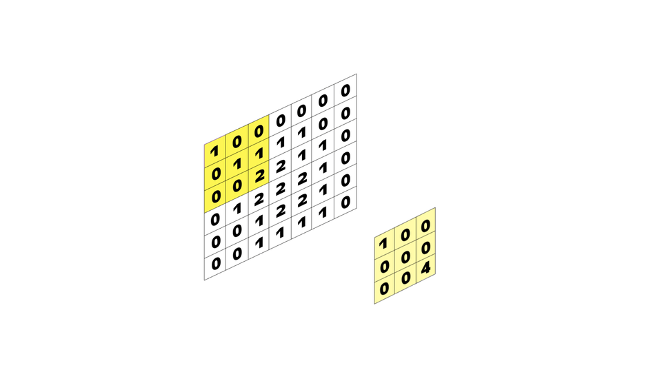 Допустим, фильтр свёртки — это квадрат 3 × 3, выделил он 9 пикселей. Это значит, что мы получили 9 новых произведений: значения пикселя со значением фильтра. Теперь эти произведения складываются друг с другом, и итоговое значение попадает в центральный пиксель выбранного квадрата.