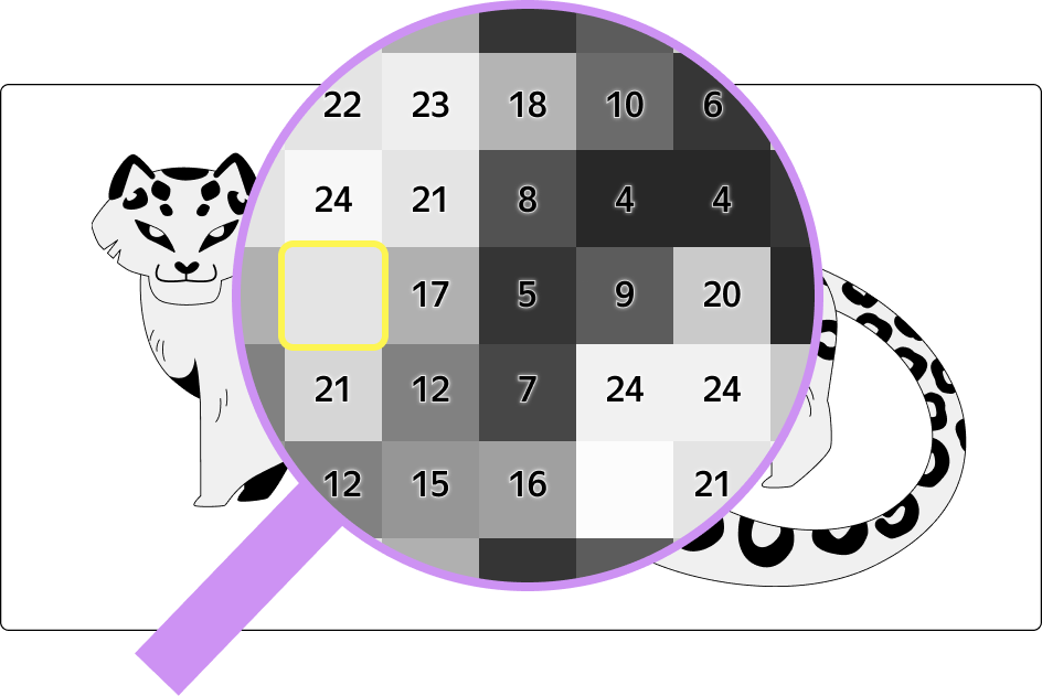 Компьютер же воспринимает картинку иначе — для него это набор пикселей. При этом пиксели закодированы — каждый имеет числовое значение.