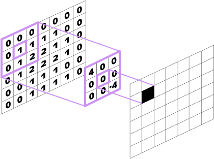 Допустим, у пикселя было значение 4, а у соответствующего окошка фильтра свёртки — 0. Путём нехитрых вычислений получим 0.