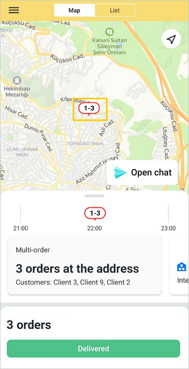 When in manual delivery mode, you can use the Delivered button. Tap it to register the delivery of all orders in a multi-order (excluding canceled and partially delivered orders).