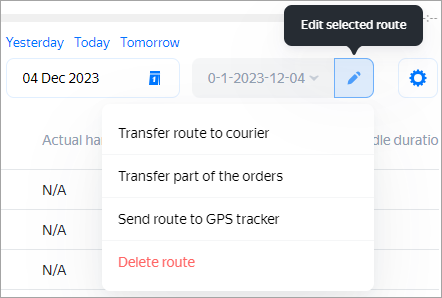 You can transfer orders from one route to another if the courier can't complete all of their orders (for example, if their car broke down or there was a long wait at a pickup location).