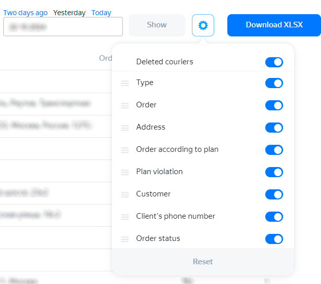 | Order according to plan | The order number according to the plan. If the courier breaks the order sequence, this field value will be different from the one in the Order field. |