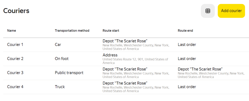 In the Couriers section, you will find a table with your company's couriers. There, you can: