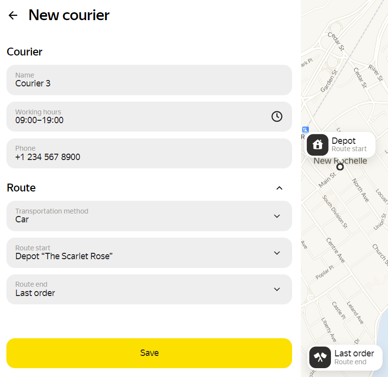 • Weight, kg*: Carrying capacity of the courier or vehicle by weight.