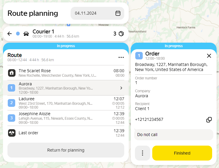 When all orders in a route are Finished, Not completed, or Cancelled, the route status changes to Finished.