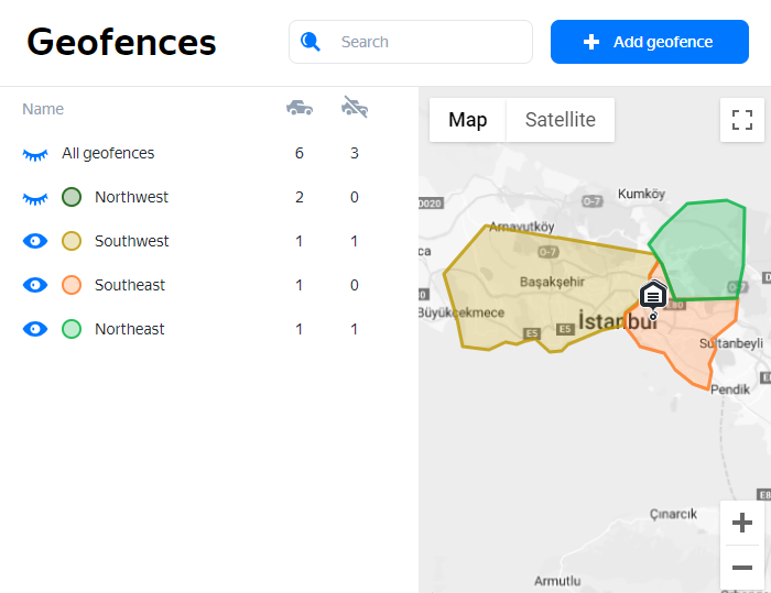 - In Master data → Geofences, click Add geofence.