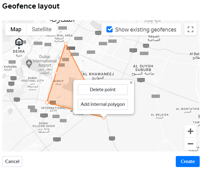 To edit a geofence, click its name. In Edit geofence mode, you can: