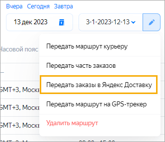 → Передать заказы в Яндекс Доставку.