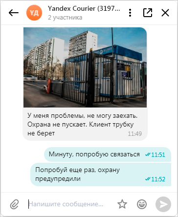 Чтобы можно было оперативно реагировать на изменения в маршруте или ситуации на дороге, скорректировать информацию по доставке, в приложении Яндекс Курьер и в интерфейсе Рабочего места логиста предусмотрена возможность общения в чате. Чаты реализованы на базе отдельного приложения Яндекс Мессенджер. Подробные инструкции о действиях с чатами можно найти в Справке.