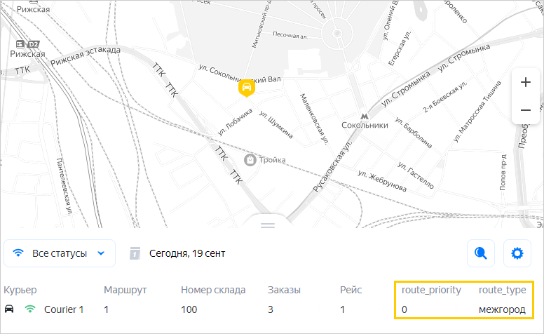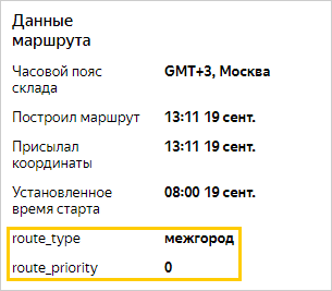custom_fieldsв полеkeyукажите название, в полеvalue— соответствующее значение. Например, в запросе ниже дляroute_typeукажем значениемежгород, дляroute_priority—0.