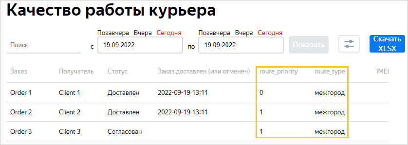 в отчете Качество работы курьера.
