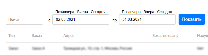 Тип нарушения временного окна У заказов с опозданием отображается тип Позже, с приездом раньше — Раньше, заказы без нарушения имеют тип Вовремя.
