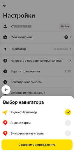 Қажет навигаторды таңдаңыз — ішкі навигация жүйесі, Яндекс Навигатор немесе Яндекс Карты. Батарея зарядын үнемдеу және маршрут бойынша барынша дәл қозғалу маңызды болса, ішкі навигацияны пайдаланыңыз.