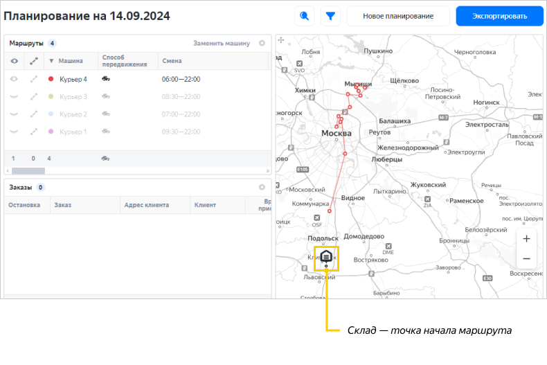 Если заказы попали в таблицу Нераспределенные заказы, вы можете развезти их с помощью грузовиков Яндекс Доставки.