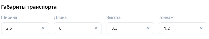 Данные о размере места для груза потребуются при планировании — для расчета, сколько и каких грузов смогут поместиться в автомобиль. Заполните только те параметры, которые учитываете при планировании маршрутов.