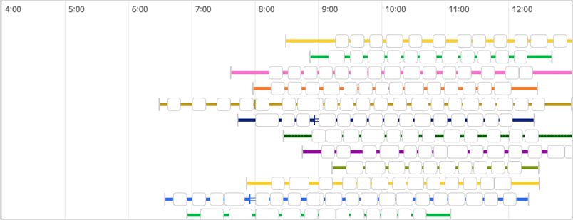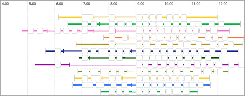 В примере ниже используется способ передвижения transit для всех курьеров. В результате курьеры выполняют доставку на общественном транспорте и заказы распределены оптимально для них.