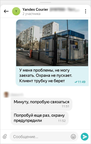 Чтобы можно было оперативно реагировать на изменения в маршруте или ситуации на дороге, скорректировать информацию по доставке, в приложении Яндекс Курьер предусмотрена возможность общения в чате. Чаты реализованы на базе отдельного приложения Яндекс Мессенджер. Подробные инструкции о действиях с чатами можно найти в Справке.
