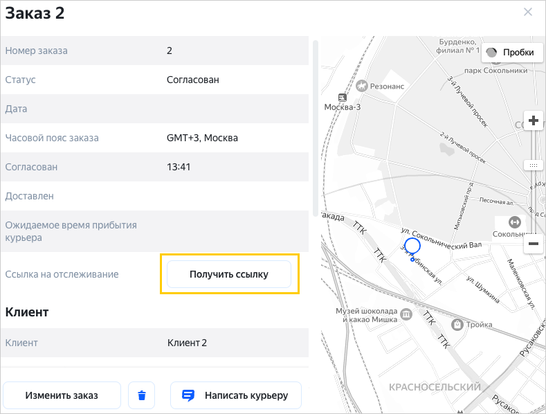 В карточке заказа. В поле Ссылка на отслеживание нажмите Получить ссылку и перейдите по ней.