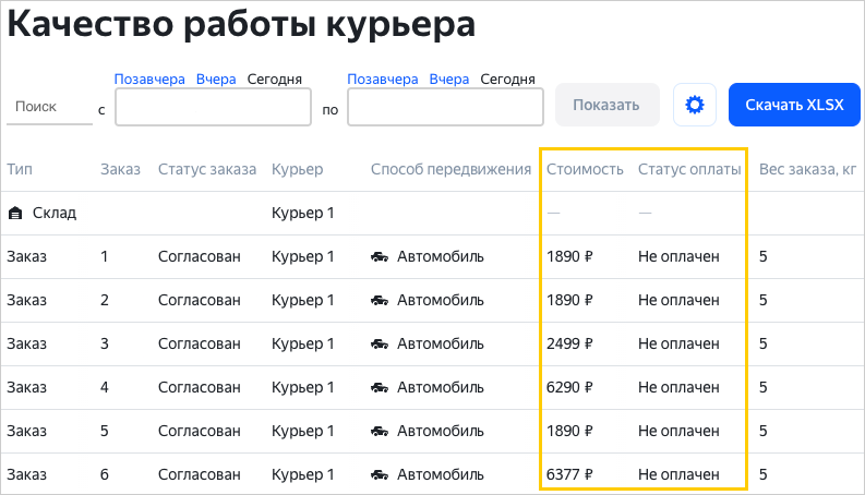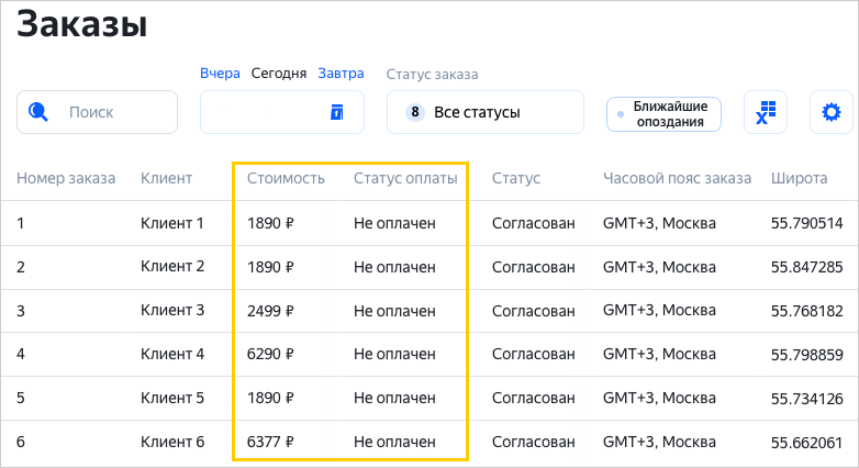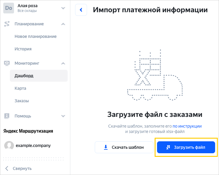 Маршрут с заказами, для которых загружается платежная информация, должен быть загружен в Мониторинг после того, как закончена настройка Яндекс Пэй для компании. Невозможно включить Яндекс Пэй для заказов, созданных до настройки сервиса.