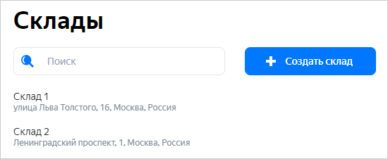 В разделе представлена информация о складах вашей компании. Здесь вы можете добавить склады, изменить информацию о складе или удалить ранее добавленные склады.