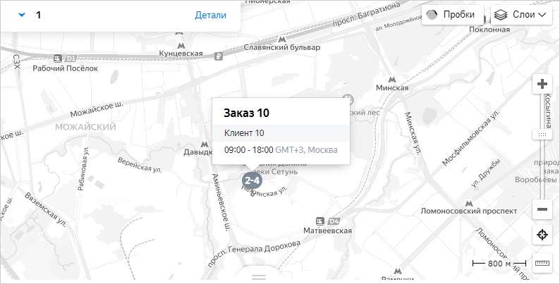 На значке указан порядок посещения заказов в точке. Если навести указатель мыши на значок мультизаказа, вы увидите краткую информацию о первом заказе в этой точке. Чтобы увидеть информацию о следующем заказе, нажмите на значок мультизаказа.