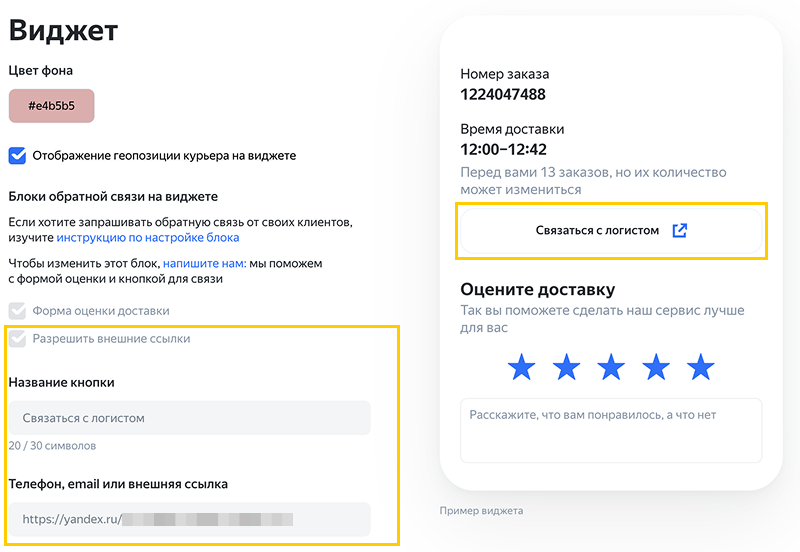 В сервисе Маршрутизации вы можете получать обратную связь от клиента при выполнении заказа. Если подключена возможность использования внешних ссылок, в форме обратной связи вместо номера телефона или email может быть указана ссылка на внешний сервис. Это могут быть формы опросов (Яндекс, Google, VK), службы безналичных чаевых, мессенджеры (Telegram, WhatsApp).