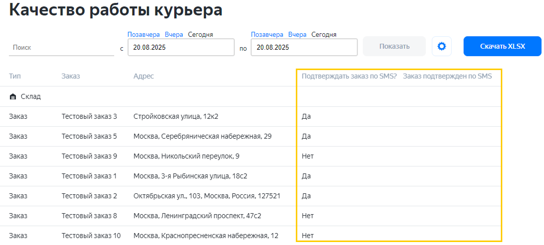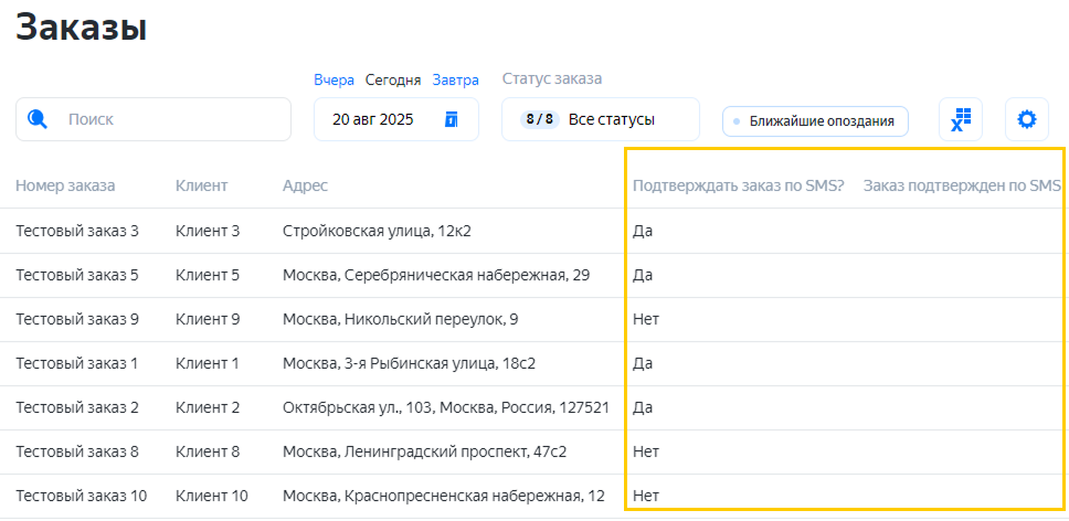Загрузка заказов с SMS-подтверждением доставки