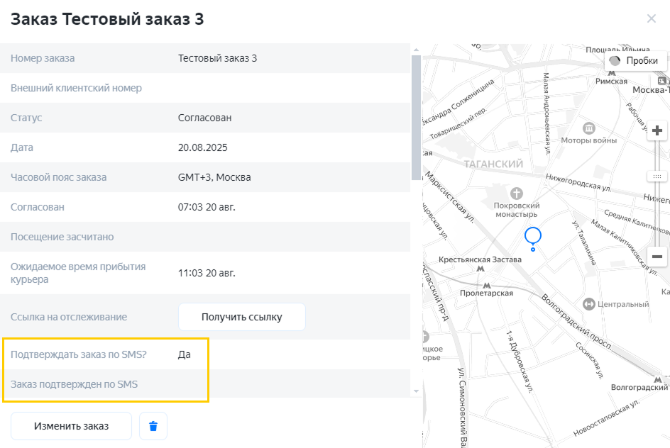 Вы можете посмотреть необходимость подтверждения заказа через SMS и его статус:
