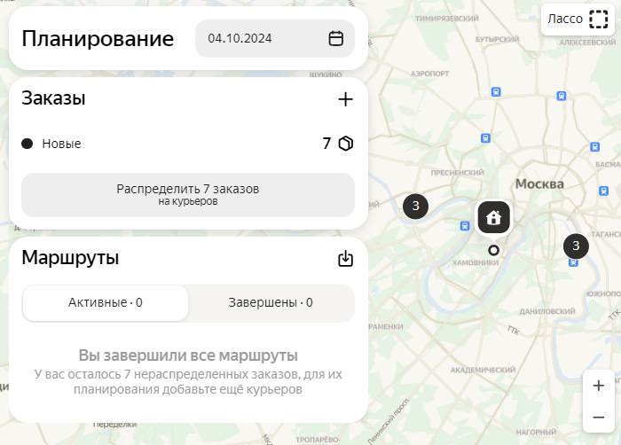 Чтобы распределить заказы между курьерами и запланировать маршруты вручную: