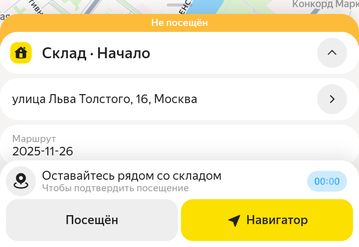 Чтобы начать работу с заказами, нажмите Начать маршрут.