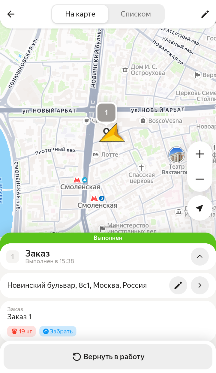 Если включен режим автодоставки, статус заказа меняется на Выполнен автоматически. Однако при потере сигнала с GPS-трекера автоматическая доставка может не засчитаться. Если вам разрешено вручную отмечать доставку, в карточке заказа будет доступна кнопка Выполнен. Для подключения такой возможности обратитесь к логисту.