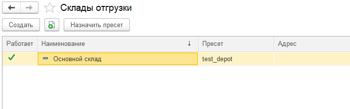 Справочник Склады отгрузки должен иметь один непомеченный на удаление элемент с заполненными параметрами.
