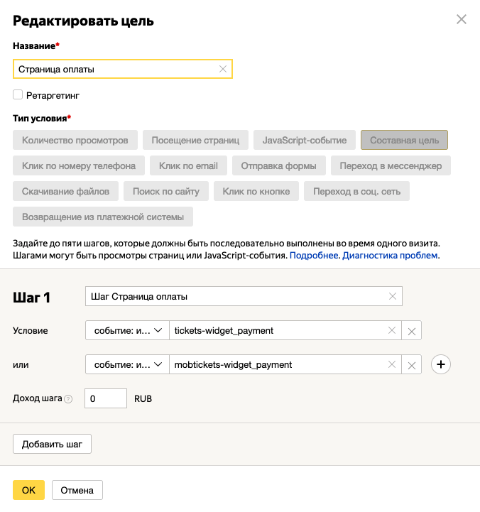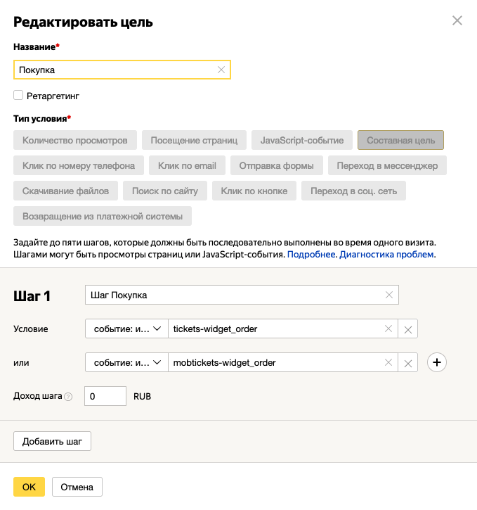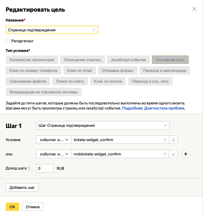 событие: идентификатор цели содержит tickets-widget_confirm ИЛИ событие: идентификатор цели содержит mobtickets-widget_confirm