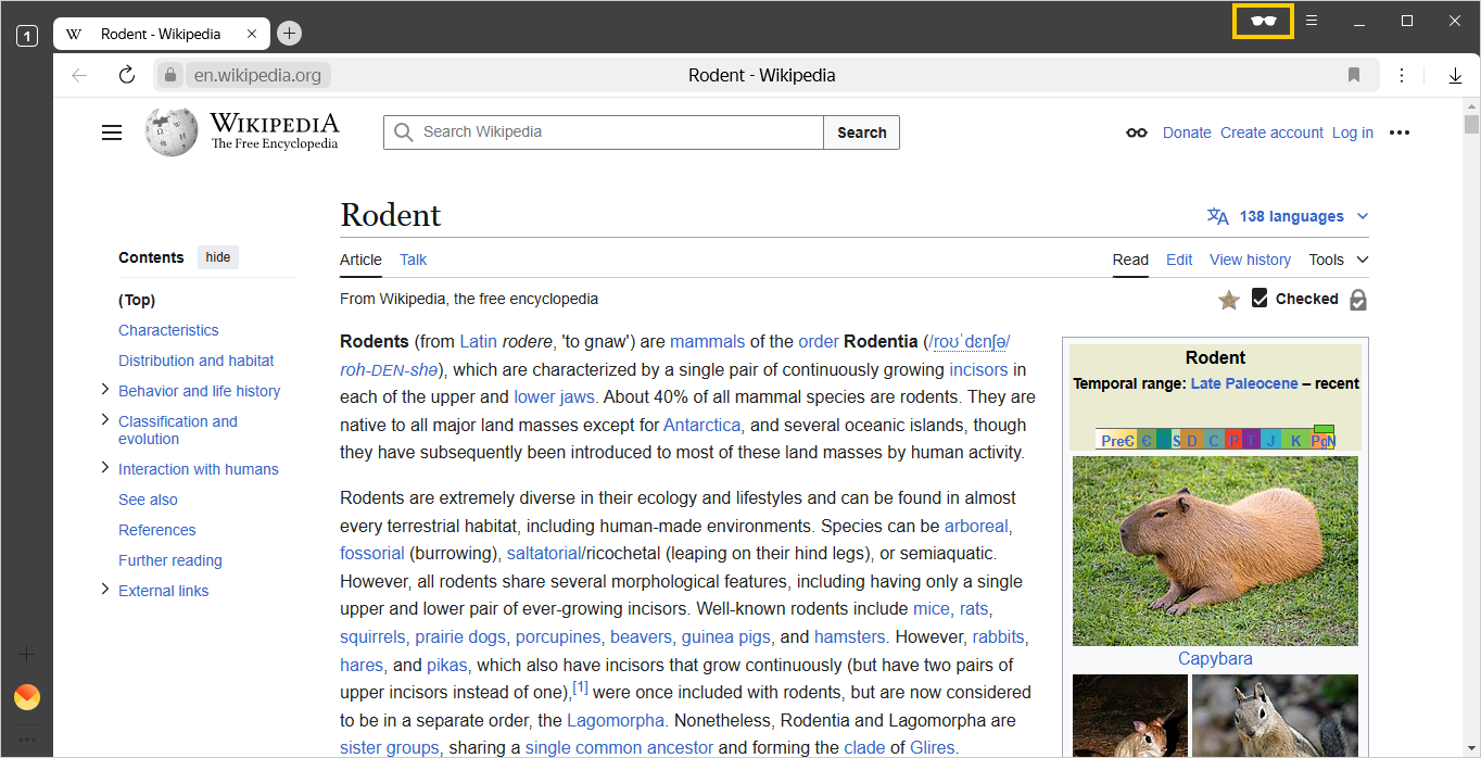 An Incognito window is marked with the  icon.