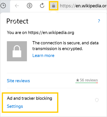 The HTTPS protocol supports data encryption and is considered to be secure for transferring confidential information. However, connections over HTTPS are only safe if all page elements are encrypted. Sometimes website pages are loaded over HTTPS, but they contain unencrypted elements such as plug-ins, JavaScript, or CSS style sheets. Hackers can intercept and use these to crack the site. This is why Yandex Browser turns on protection from unencrypted elements within the Protect security system.