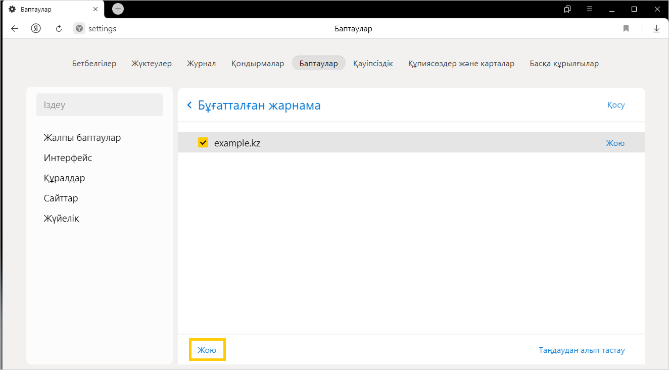 3. Тінтуірдің меңзерін қажетті беттің мекен-жайына апарып, Жою басыңыз.