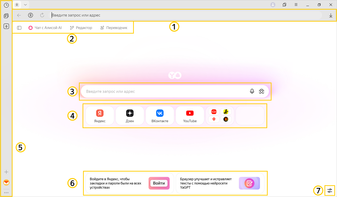 Переключайтесь между кнопками истории чатов с Алисой AI, Чат с Алисой AI, Редактор и Переводчик.